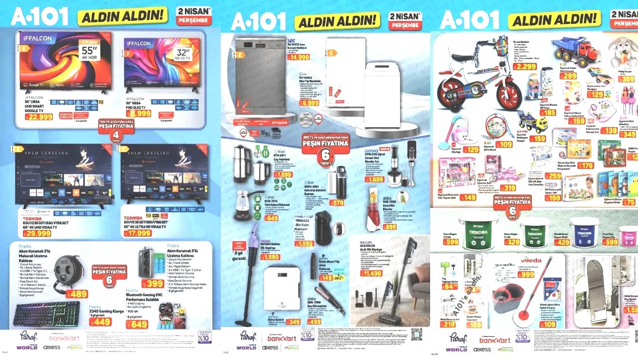 A101’in 2 Nisan 2026 tarihli aktüel kataloğu yayımlandı ve bu hafta satışa sunulacak ürünler büyük ilgi topladı. Elektronik ürünlerden beyaz eşyalara, kamp ekipmanlarından motosikletlere kadar geniş bir ürün yelpazesi sunan bu katalog, tüketicilere büyük fırsatlar sunuyor.